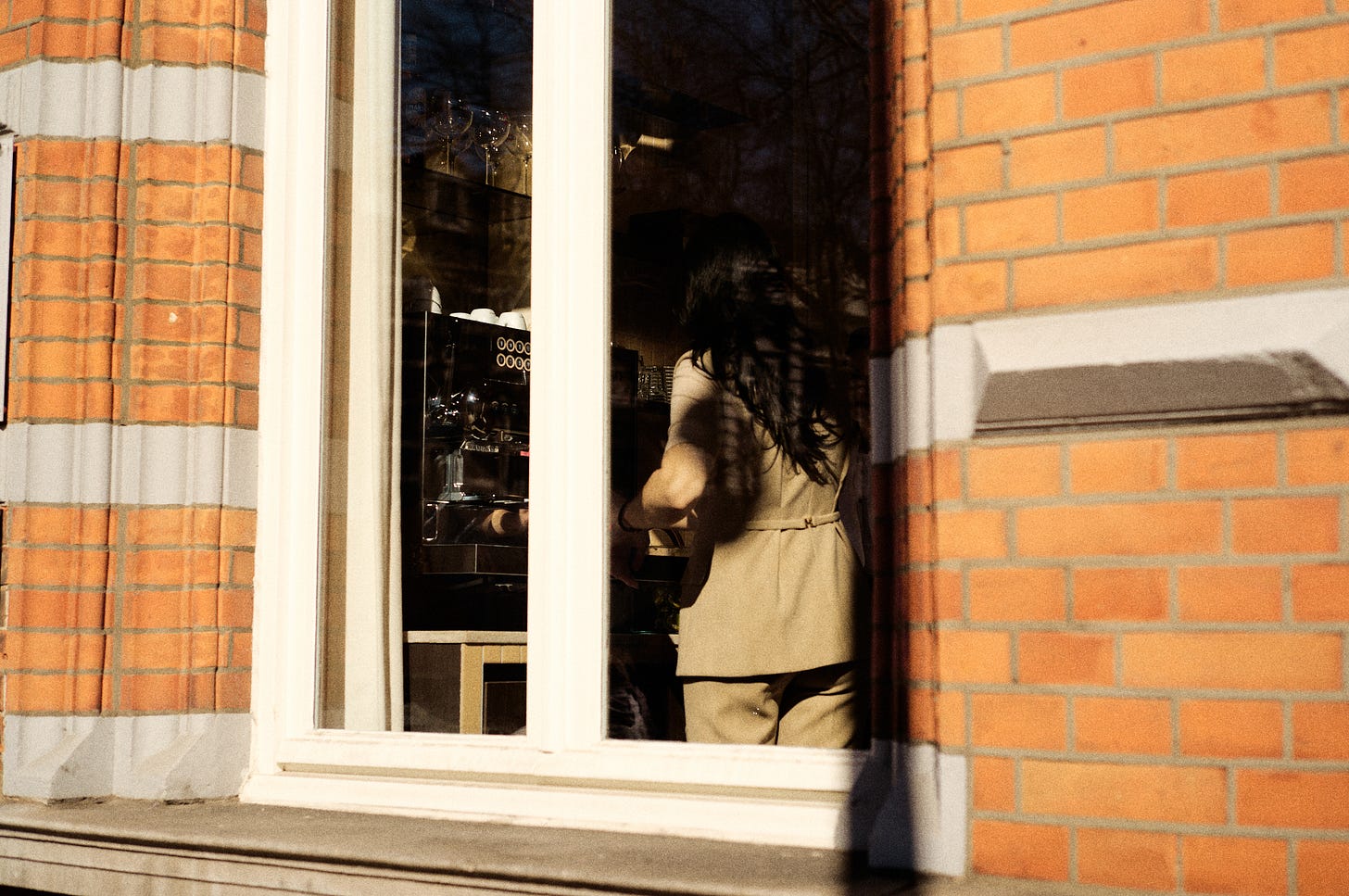 And what I mean by that is that I really love watching how the light and shadow are playing together and reveal elements in the shop’s windows.